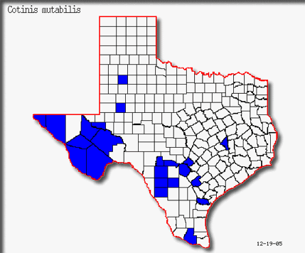 297 specimens of Cotinis mutabilis from California to Texas, south to Honduras.