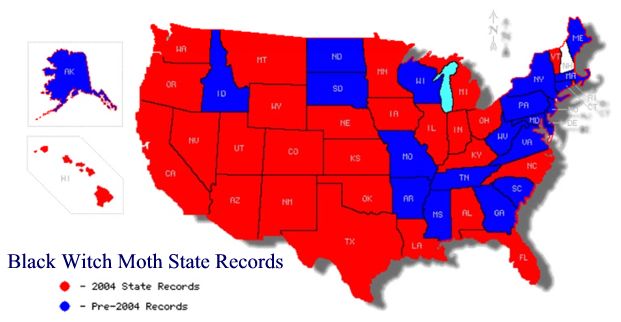 The "Red States" are 2004 records and demonstrate the western distribution for this insect.